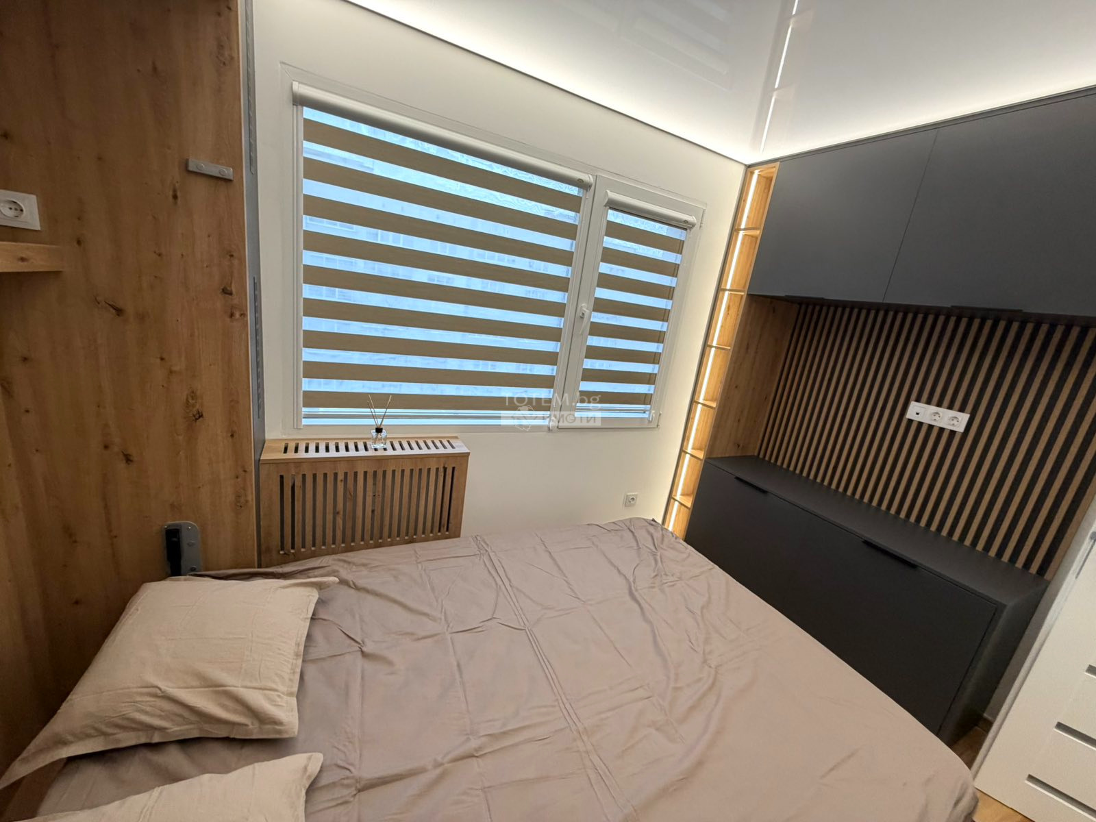 - спалня - напълно обзаведена, функционално падащо легло с цел осигуряване на дневен комфорт и усамотение, окачен таван.