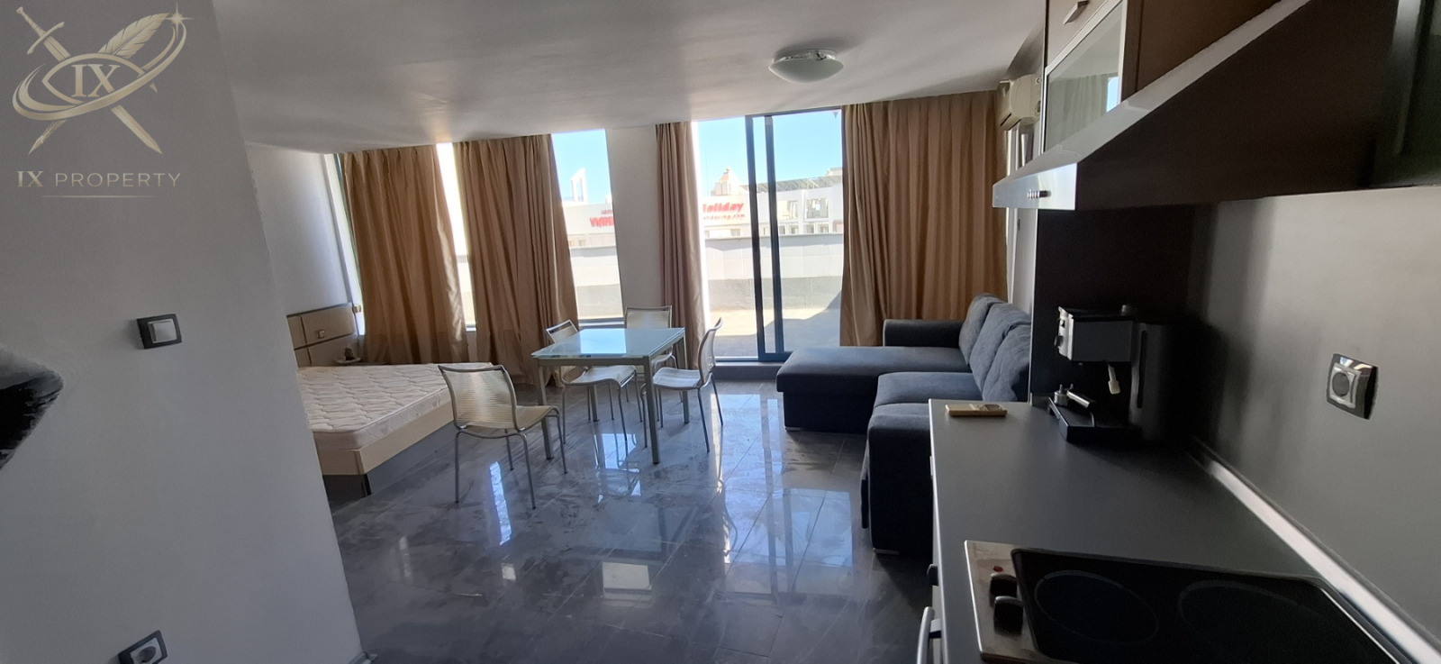 Голямата тераса, високият етаж и локацията в един от най‑популярните комплекси в Слънчев бряг го правят изключително атрактивна оферта.