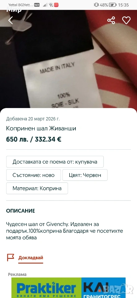 Копринен шал Givenchy 4G, снимка 1 - Шалове - 54067175 Копринен шал Givenchy 4G, снимка 2 - Шалове - 54067175 Копринен шал Givenchy 4G, снимка 3 - Шалове - 54067175 Копринен шал Givenchy 4G, снимка 4 - Шалове - 54067175 Копринен шал Givenchy 4G, снимка 5 - Шалове - 54067175 Копринен шал Givenchy 4G, снимка 6 - Шалове - 54067175 Копринен шал Givenchy 4G, снимка 7 - Шалове - 54067175 1/7