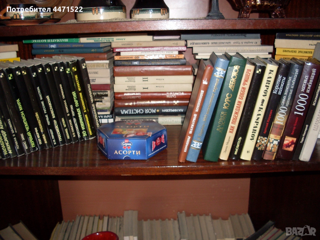 Книги и списания за шах. Книги на български и руски език 220 броя и списания и книжки над 100 броя също на български и руски езеци.