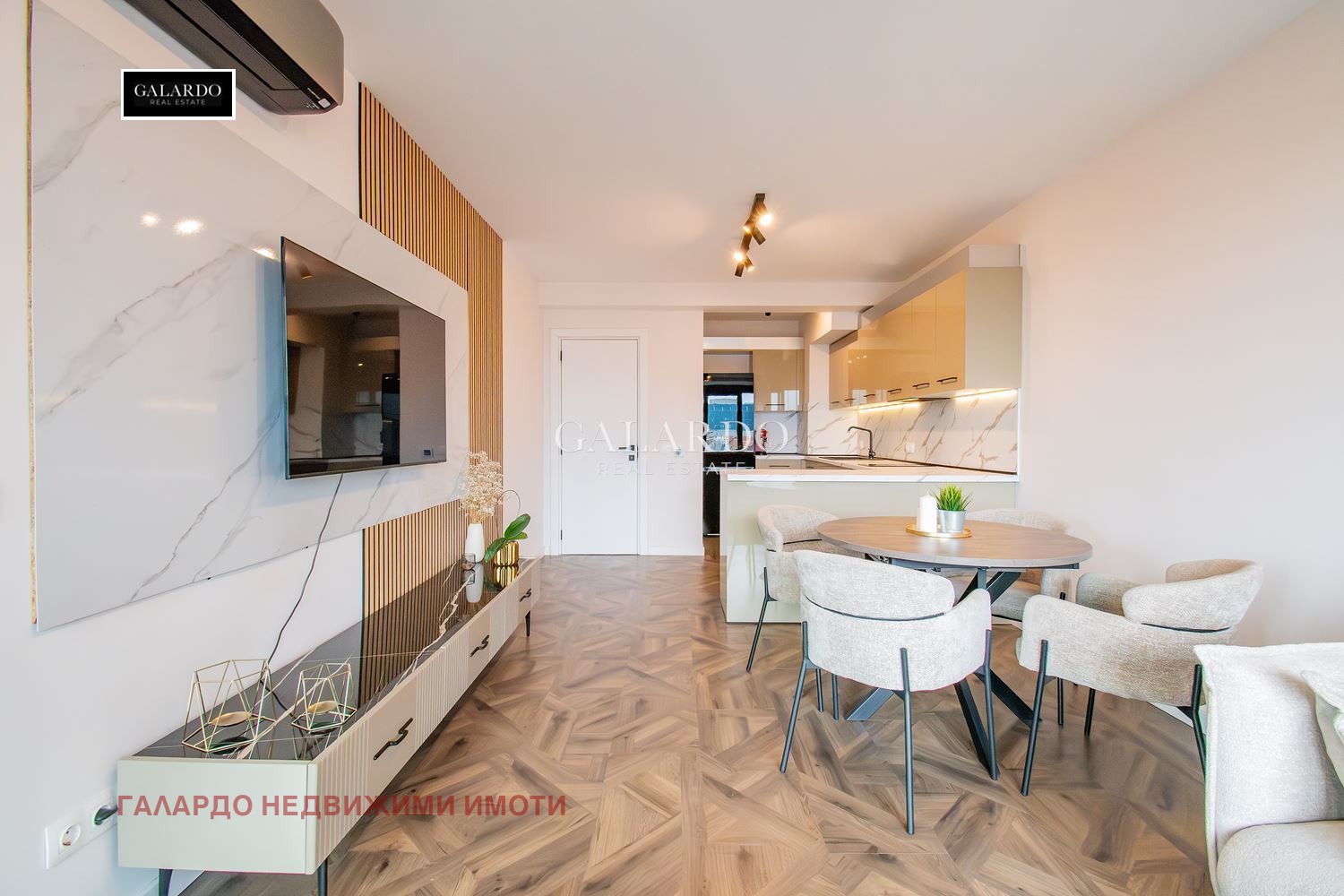Имотът се предлага напълно обзаведен и е съчетание от стил и комфорт, изпълнен по дизайнерски проект до най- малкия детайл.