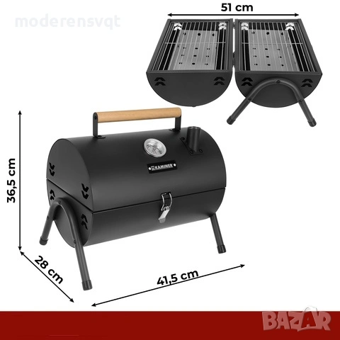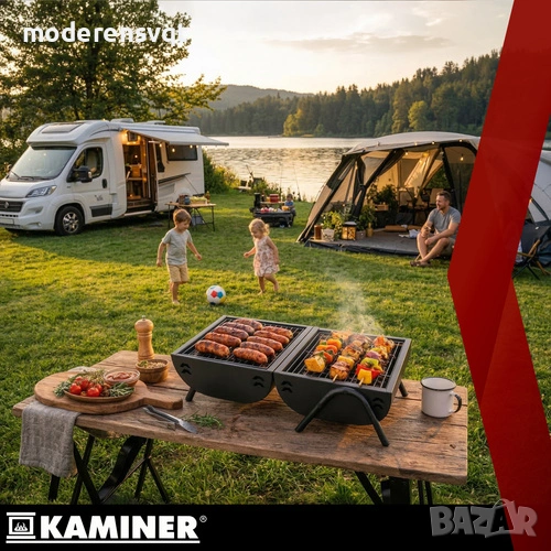 Искате да си направите бързо барбекю в градината, на вашия парцел или на къмпинг, но без да мъкнете голяма скара и да гадаете температурата? Тази къмпинг скара Kaminer съчетава компактен размер с функции, които правят готвенето наистина лесно . Капак с термометър, две решетки и две тави за дървени въглища осигуряват контрол, удобство и постоянни резултати.