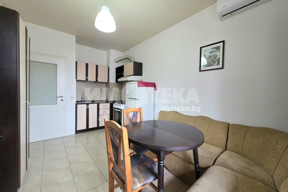 Двустаен апартамент състоящ се от коридор, дневна с кухненски бокс, спалня, баня с тоалетна и балкон на който се излиза от двете помещения. Изложението е запад, отоплението е на ТЕЦ и климатик.