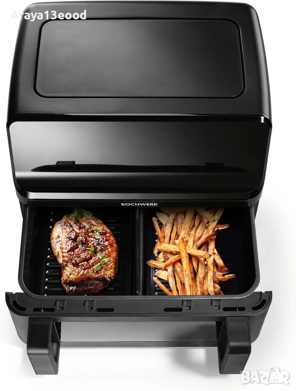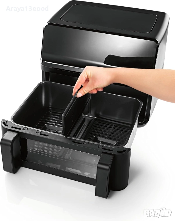 разделяема камера от 9 литра, функция Dual Zone и интелигентна синхронизация, уредът позволява приготвяне на две различни ястия едновременно – бързо, удобно и ефективно.