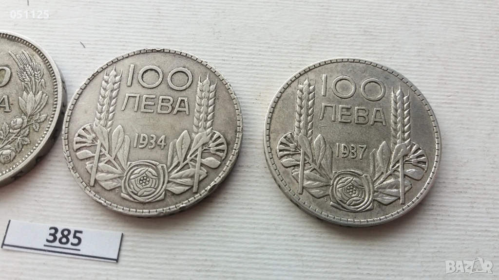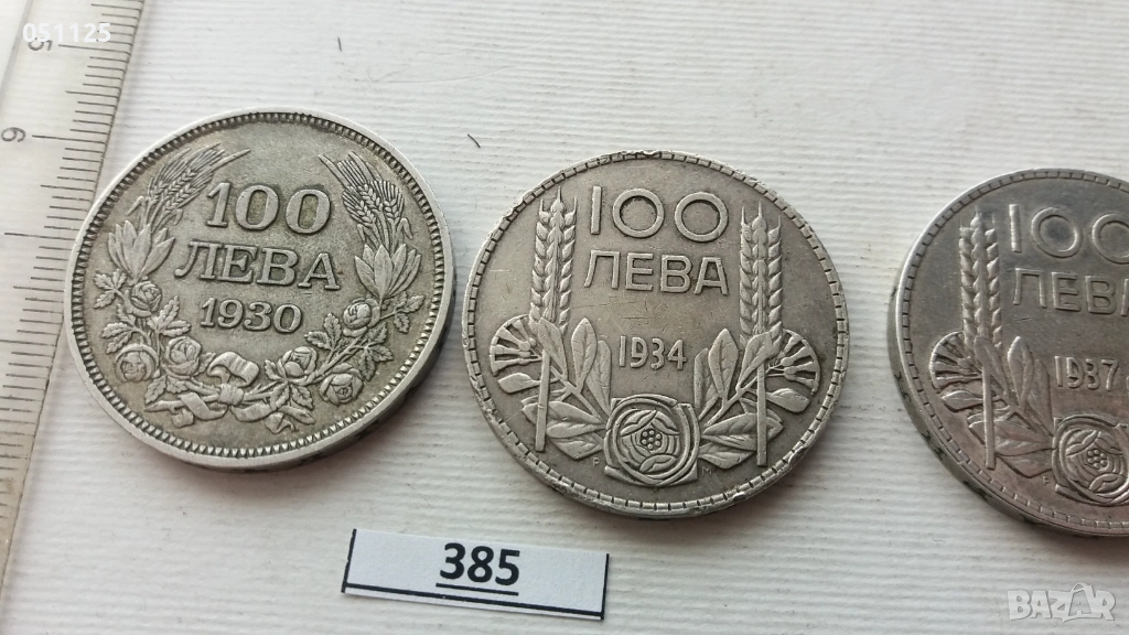 лот от 3 броя по 100 лева от 1930, 1934 и 1937 година сребро → Обява 54068046