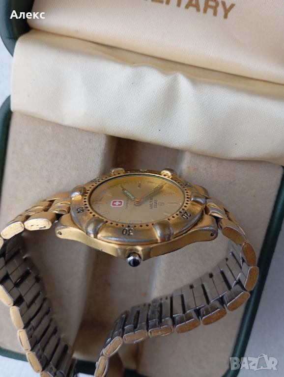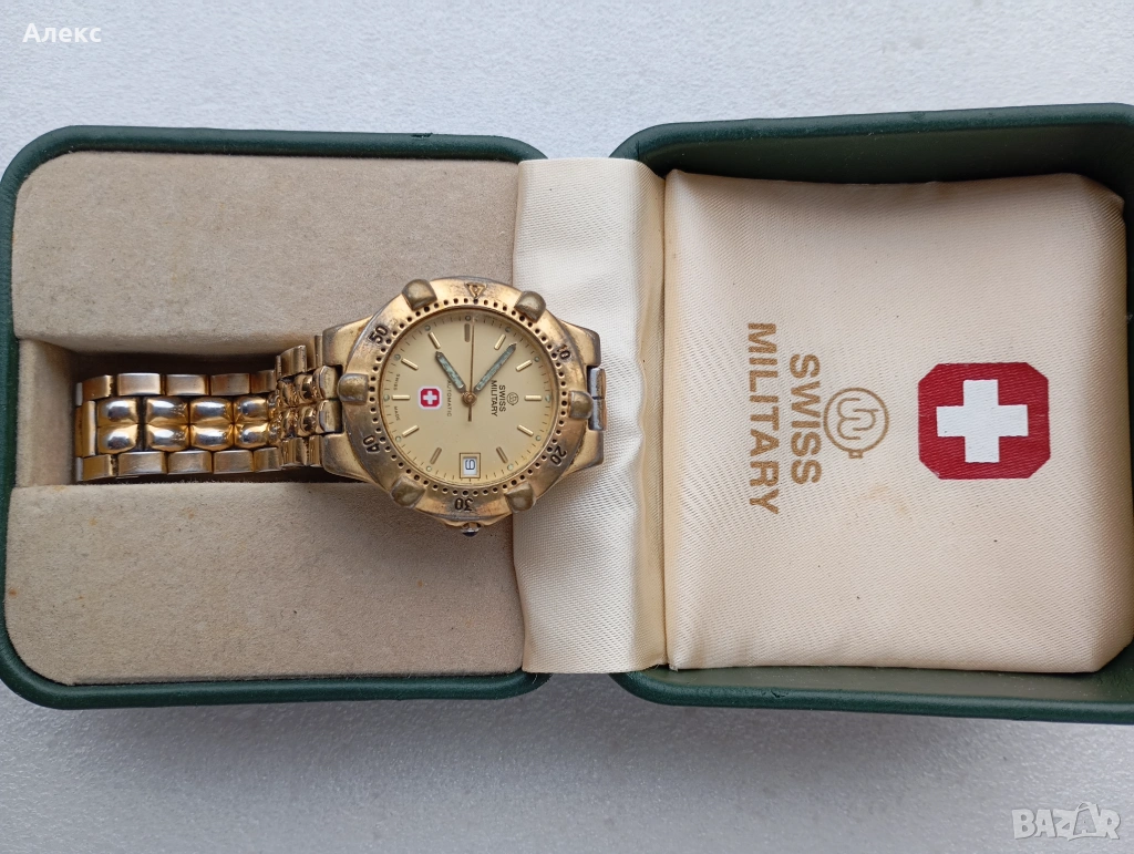 SWISS MILITARY швейцарски часовник автомат , 21 jewels диаметьр 38мм работещ. Цена 50 евро за София лично предаване. .Часовника е позлатен Останалото се вижда от снимките.