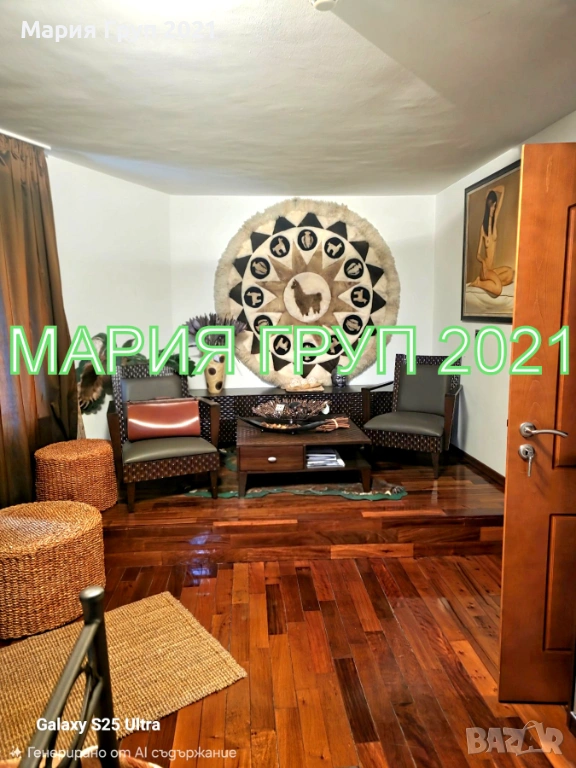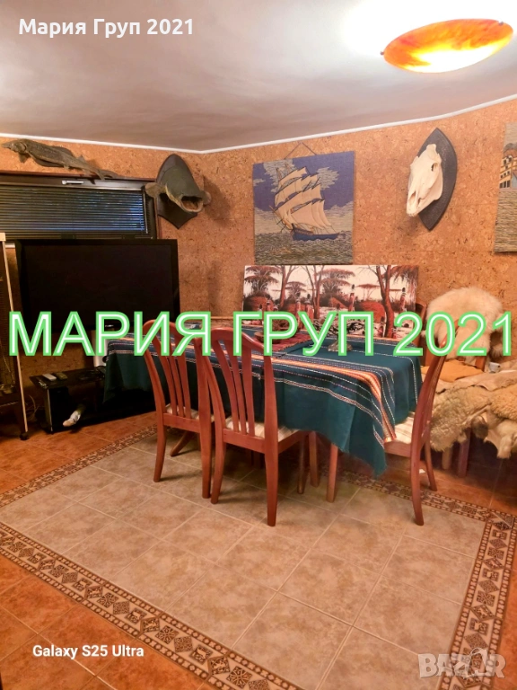 Първи етаж (121 кв.м.): хол, трапезария, кухня с вградени ел. уреди, място за отдих, спалня за гости, верадна, санитарен възел!!!