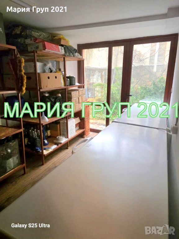 Приземен етаж: гараж 18 кв.м., санитарен възел, механа оборудвана с кухня с вградени ел.уреди, стая (винарна), фитнес, складово помещение!!!