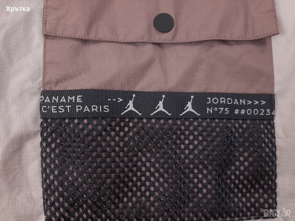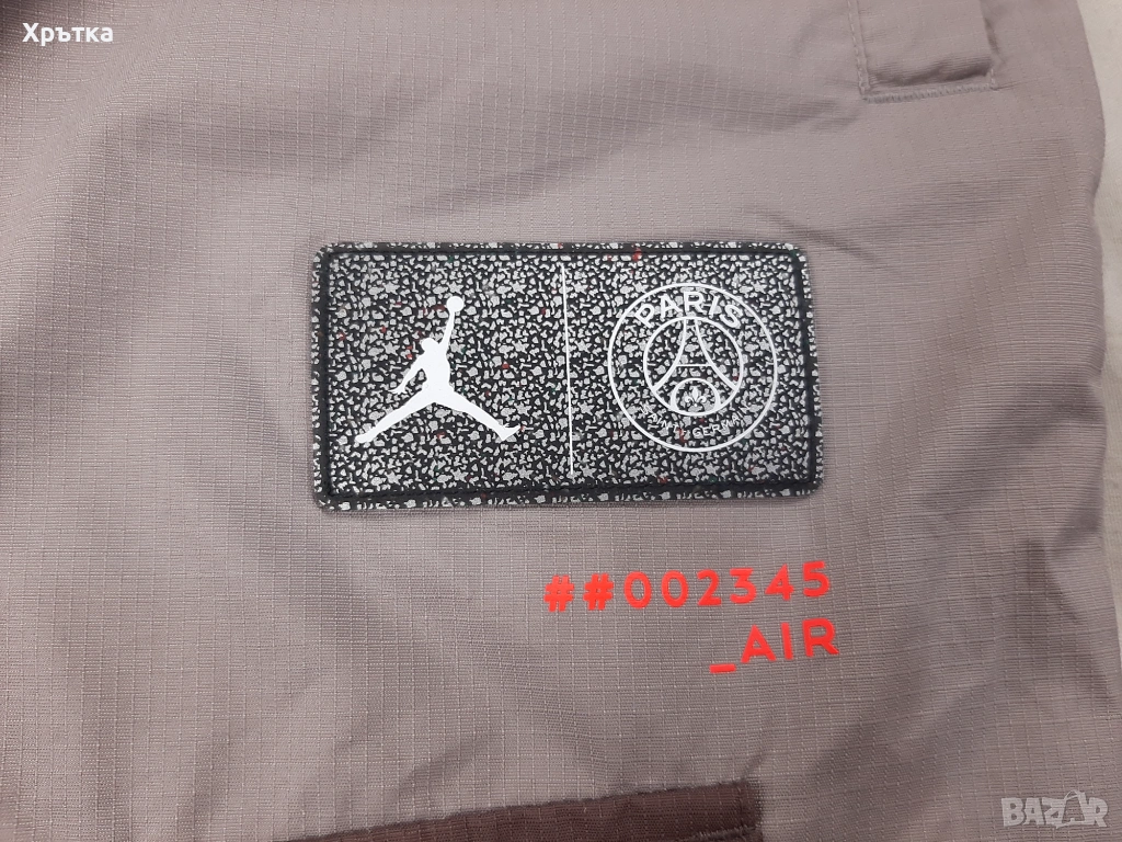 Отличително лого на Jordan x PSG и специално разработена лента с надписи върху карго джобовете.