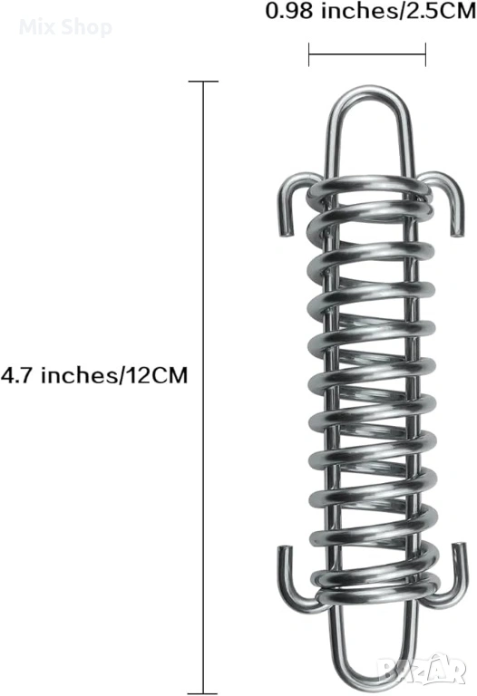 МНОГОФУНКЦИОНАЛНИ ПРУЖИНИ - Освен че се използва като амортисьорна пружина за каишка за кучета, тази скоба може да се използва и като пружинно затваряне за чували с пясък, хамаци, въжета, C-образни столове, пружини за чадъри, пружини за чадъри, палатки за къмпинг, пружина за чадър.