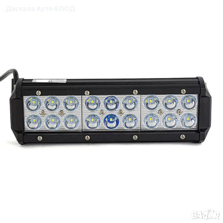 LED барът с мощност 54W и 18 висококачествени LED диода по 3W е ефективно и надеждно осветително решение, предназначено за различни приложения, включително офроуд, строителна техника, селскостопански машини и търговски превозни средства. С компактния си дизайн, здрава конструкция и изключителна яркост, този LED бар осигурява отлично осветление и дълготрайна работа дори в най-тежките условия.