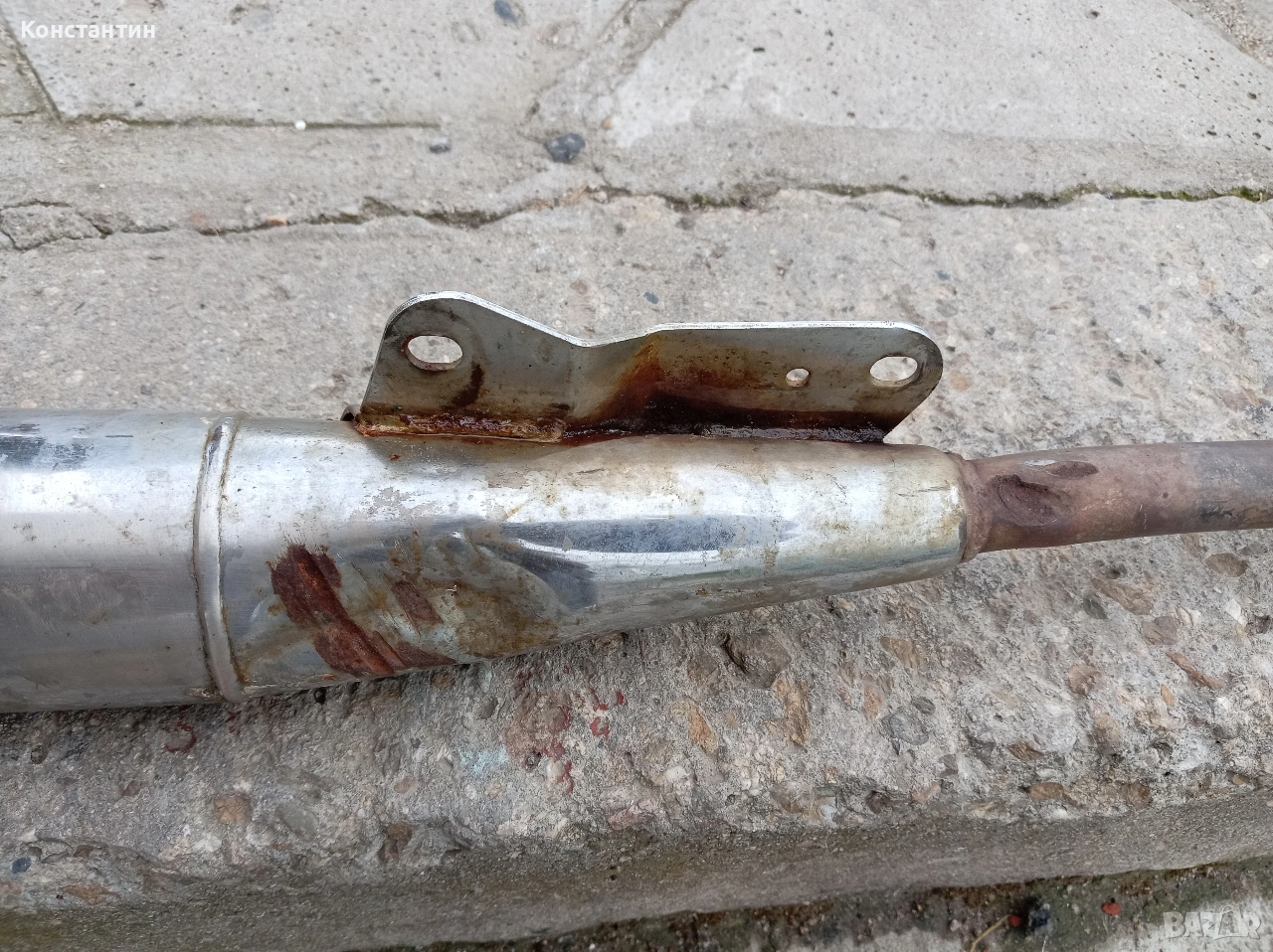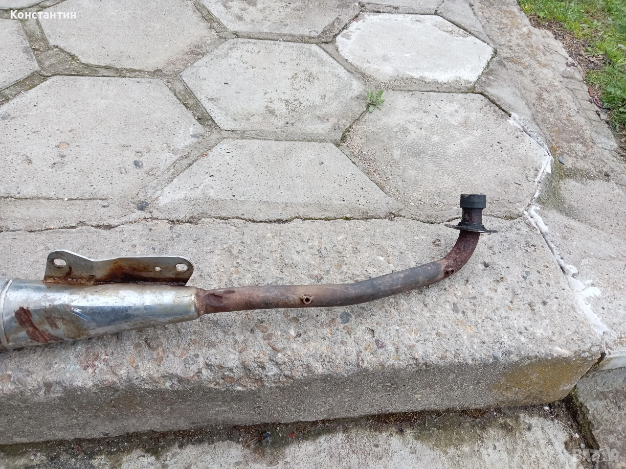 Описание: Продавам стандартен хромиран ауспух за мотопед тип „папаки“. Ауспухът е здрав, без дупки и без изгнили участъци. Свален е от работеща машина и осигурява тиха и стабилна работа на двигателя. Характеристики: Тип: Стандартен (Stock) ауспух, подходящ за модели от 50сс до 110сс. Материал: Хромирана стомана. Състояние: Добро общо състояние. Има лека повърхностна патина по кривката, която е нормална за употребявана част, но самото гърне е запазено. Монтаж: Оригинално ухо за захващане към рамката и фланец за цилиндъра. Цена: 25€ Доставка: Изпращам с Еконт или Спиди с опция преглед, за да се уверите в състоянието му на място. Гърнето е запазено има някоя вдъпловина но нормално за годините си за повече инфо на лс или тел 0876210138
