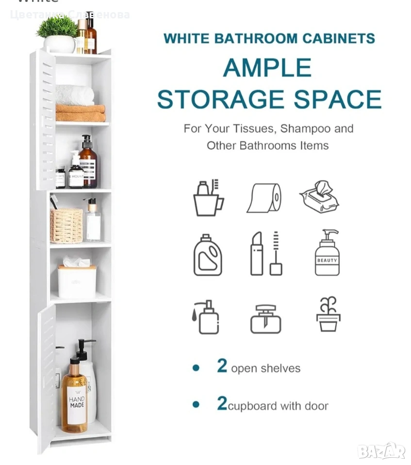 Шкаф за баня, органайзер за дома, офис, хол, кухня, антре, бял