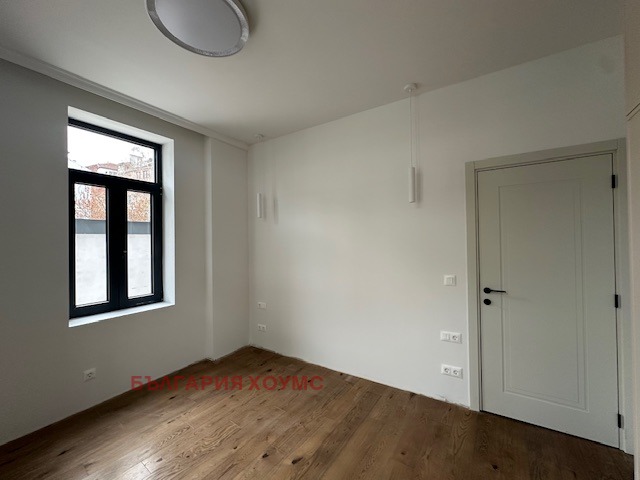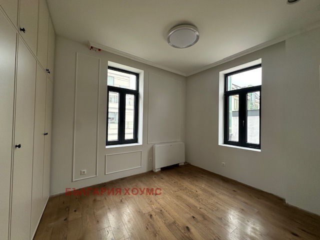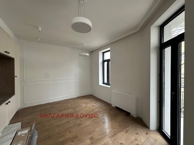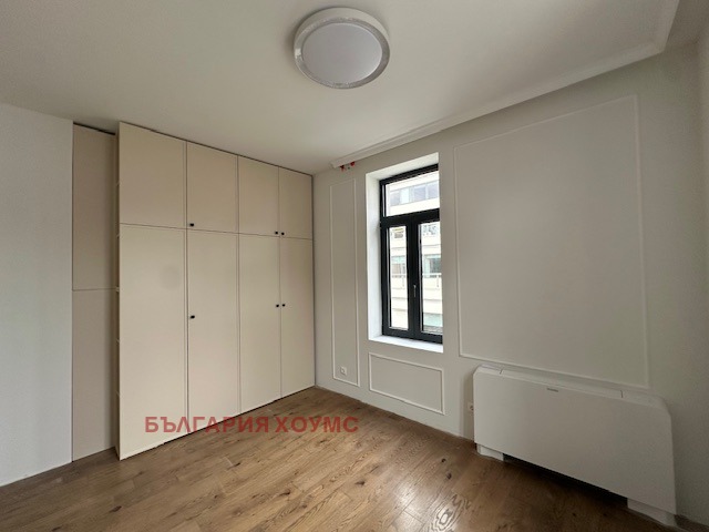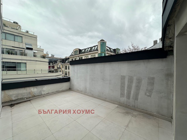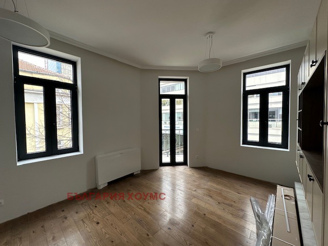 България хоумс предлага под наем прекрасен напълно обзаведен 3 ст. ап. в идеален център на София в нова реставрирана сграда, състоящ се от коридор, кухя, дневна с трапезария, 2 бр. спални, баня с тоалетна и голяма тераса, както и две сервизни помещения на терасата.Изключително светъл с изложение изток-запад.