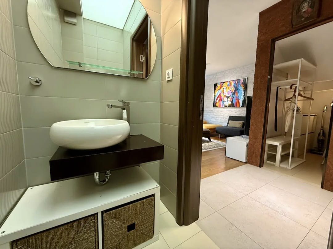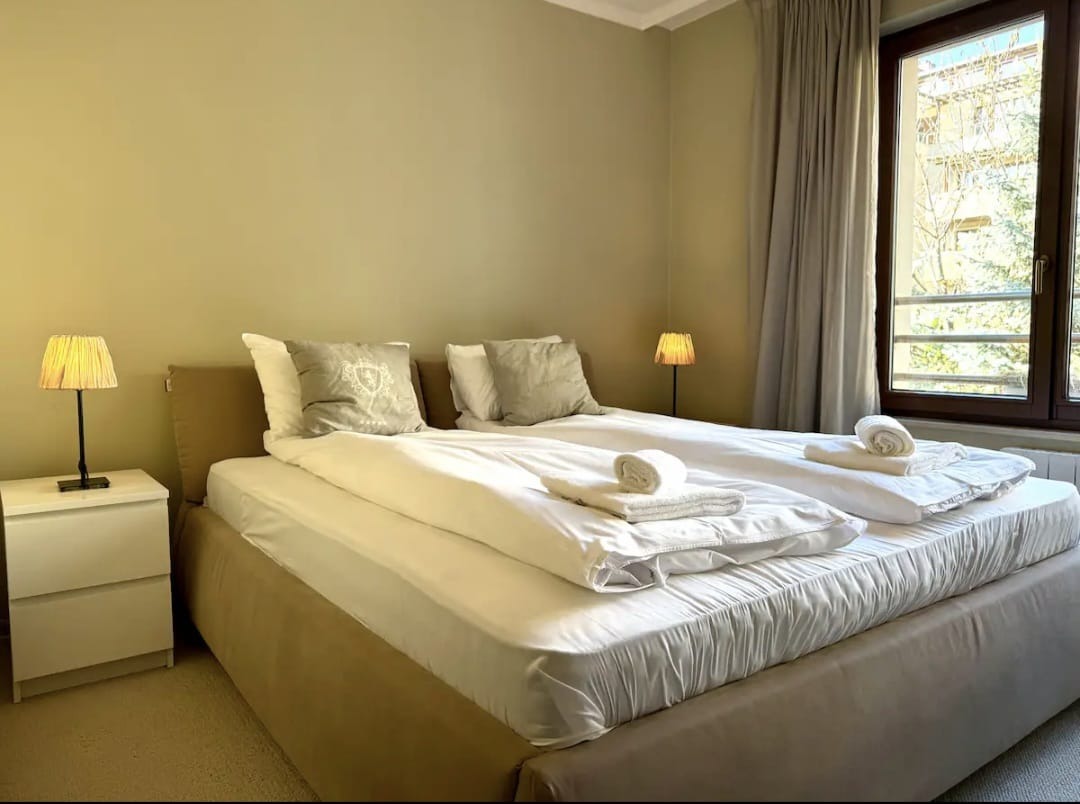 Апартаментът е напълно обзаведен и е с прекрасна гледка към вътрешността на комплекса, находящ се зад мол България.