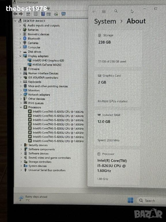 Видео картите са две-вградена Intel UHD 620 и дискретна NVIDIA GeForce MX250 (2GB GDDR5)