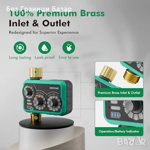 Нов Таймер за поливане с месингов вход и изход 3 режима за маркуч 480 минути ръчен и дъждовен
