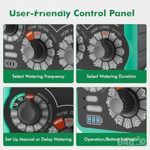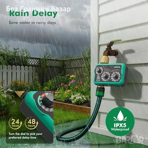 таймер за поливане с 3 отделни регулатора за автоматичен режим, ръчно поливане и отложен старт при дъжд