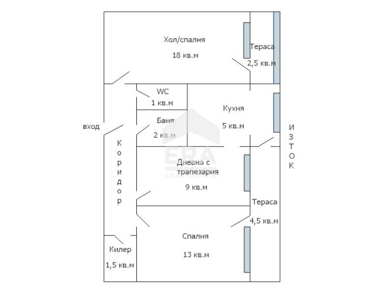 ЕРА Варна Тренд предлага за продажба тристаен панелен апартамент с източно изложение, в кв. Младост 1, в близост до Mr. Bricolage, Билла и Лидл. Имотът е със застроена площ 67 кв.м, разположен на първи жилищен (висок) етаж от общо 8 етажа. Състои се от хол/спалня (18 кв.м) с излаз на остъклена тераса (2,5 кв.м), кухня (5 кв.м) с преход от дневна с трапезария (9 кв.м), спалня (13 кв.м), втора тераса (4,5 кв.м) с излаз от спалнята и кухнята, коридор, килер (1,5 кв.м), отделни баня (2 кв.м) и тоалетна (1 кв.м), и прилежащо мазе. Изложението на всички стаи е изток.