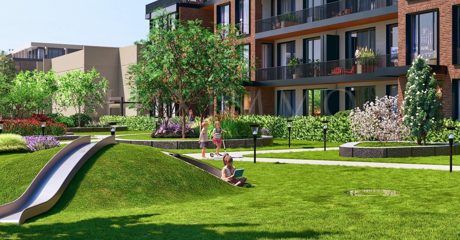 Общите части на сградите и входните пространства ще са завършени с настилка и облицовка от естествен мрамор или гранит. Крайното покритие по всички тераси ще е с гранитогрес. Жилищният комплекс ще бъде своеобразен оазис в динамичната градска среда на Пловдив.