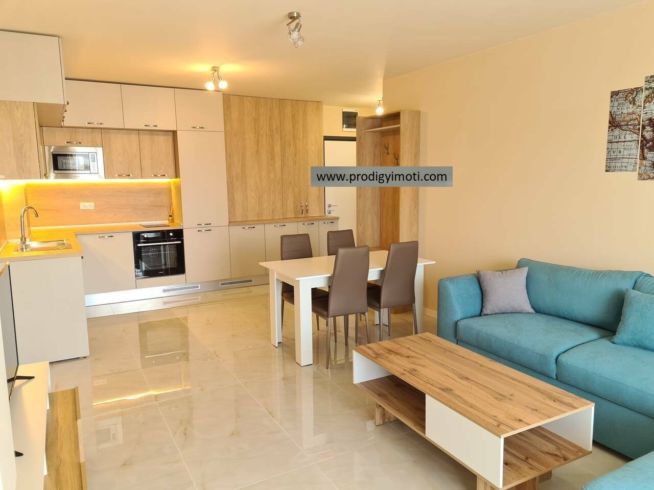 Луксозен двустаен апартамент в затворен комплекс. Жилището се състои от коридор, дневна с кухненска част, стая, баня и тераса. Модерно обзавеждане. Възможност за наемане на подземно паркомясто. Работим с комисиона, невключена в цената, при осъществяване на сделка за обекта. Преди оглед се подписва посреднически договор. Референтен номер 1370015