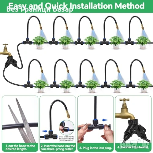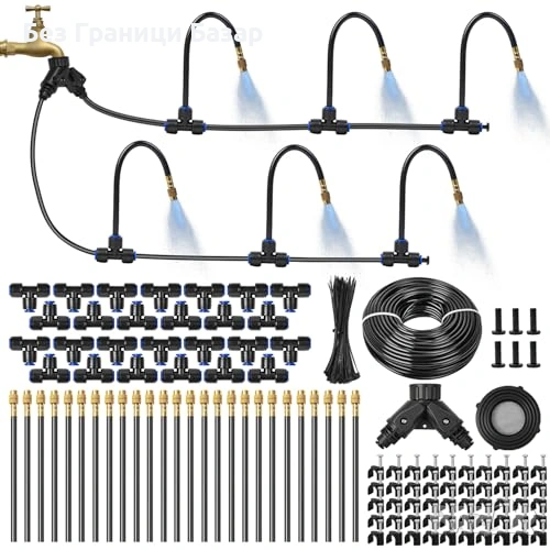 Нова Охлаждаща мъгла Мистинг комплект за градина – дюзи, маркуч, скоби, фитинги, кран