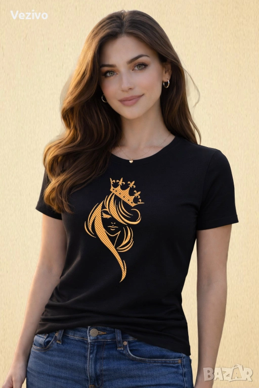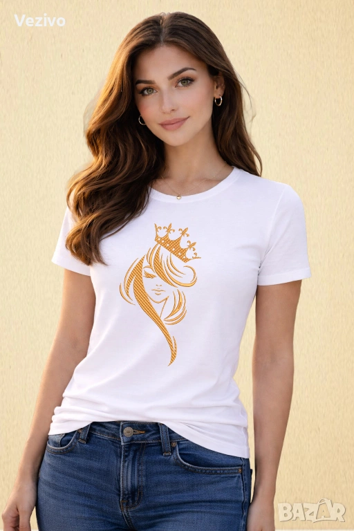Стилна и модерна бродерия с женски силует и корона – символ на увереност, красота и вътрешна сила.