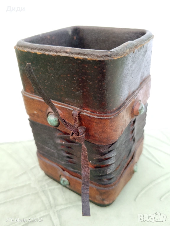 Кожена чаша,сувенир от Малта.За бюро,за прибори за писане. → Обява 54069354