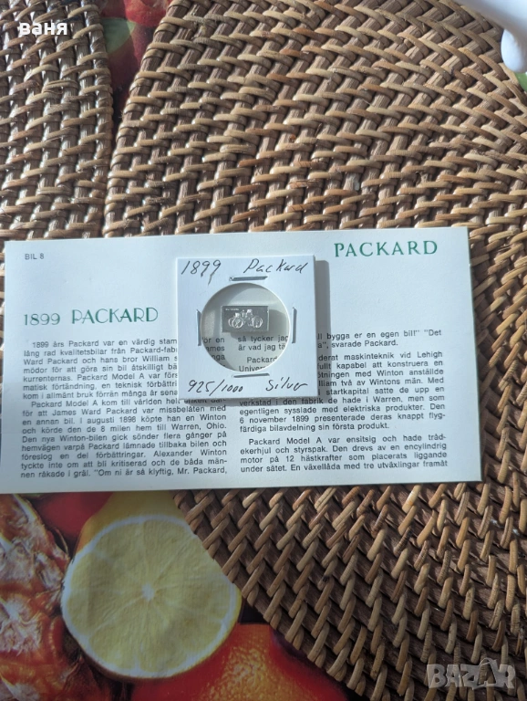 Сребърно кюлче с образа на кола  → Обява 54069363