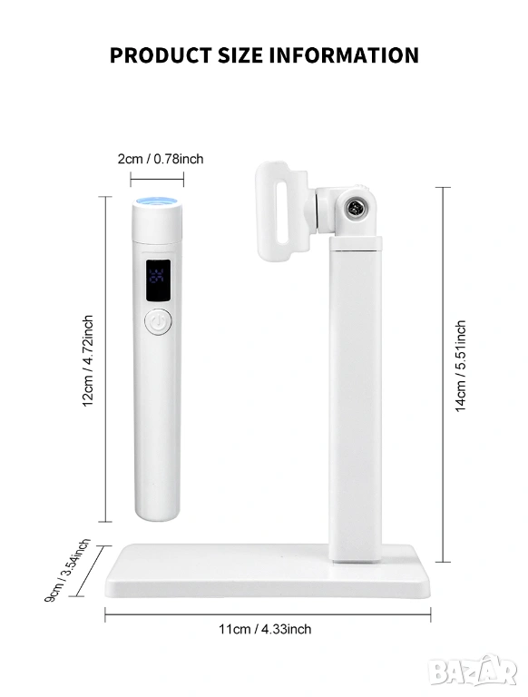 UV LED лампа за нокти, със стойка и 4 силиконови накрайника