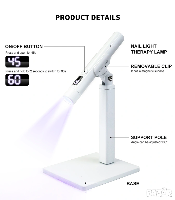 прехвърляне на декорации ,или френски маникюр. 2 режима на таймер, 45
