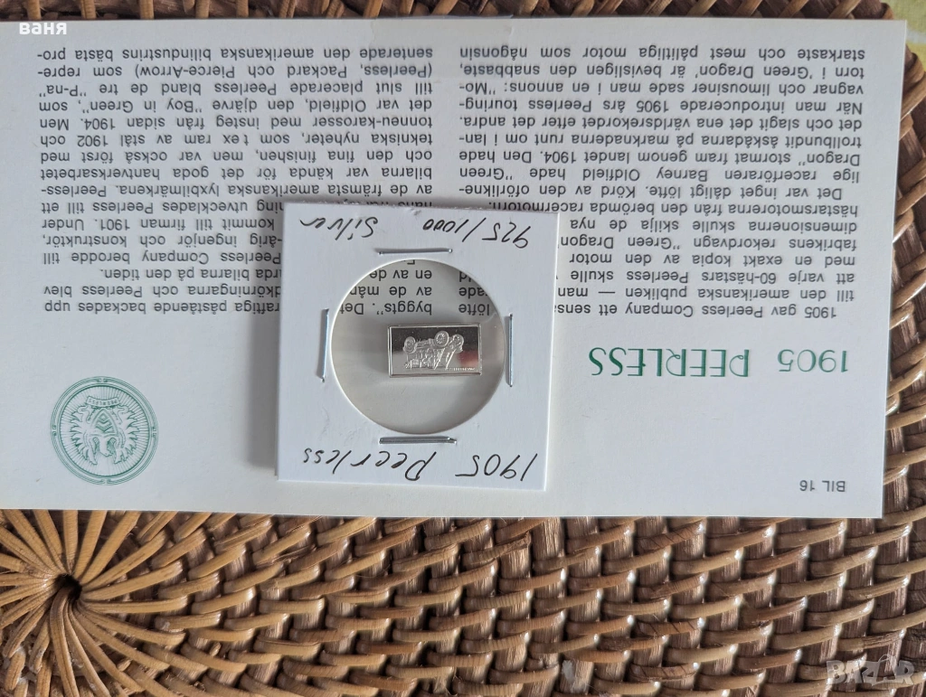 Сребърно кюлче с образа на кола → Обява 54069391