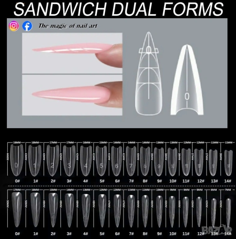 SANDWICH Dual Form , двойни форми тип сандвич - Стилето остри ,60 броя - размери от 0 до 14, прозрачни