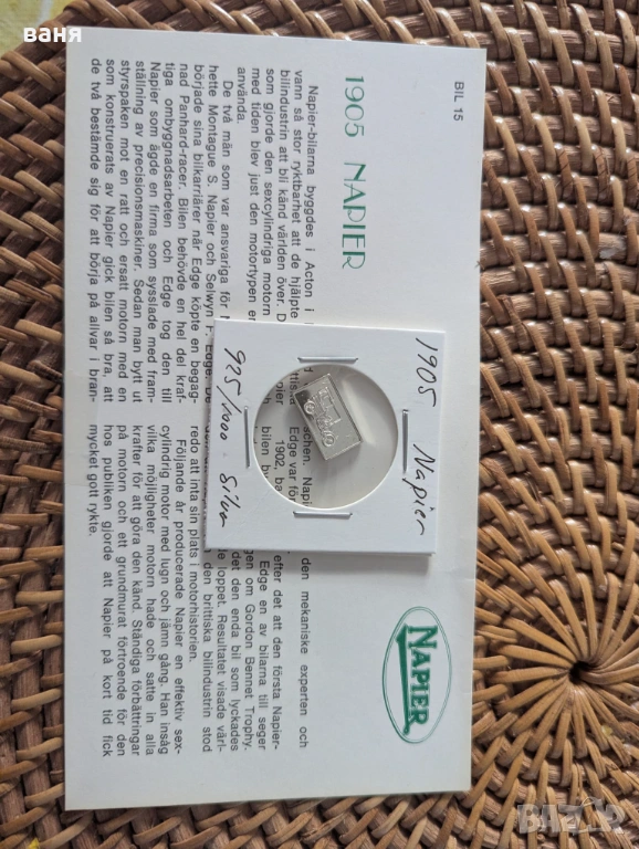 Сребърно кюлче с образа на кола → Обява 54069404