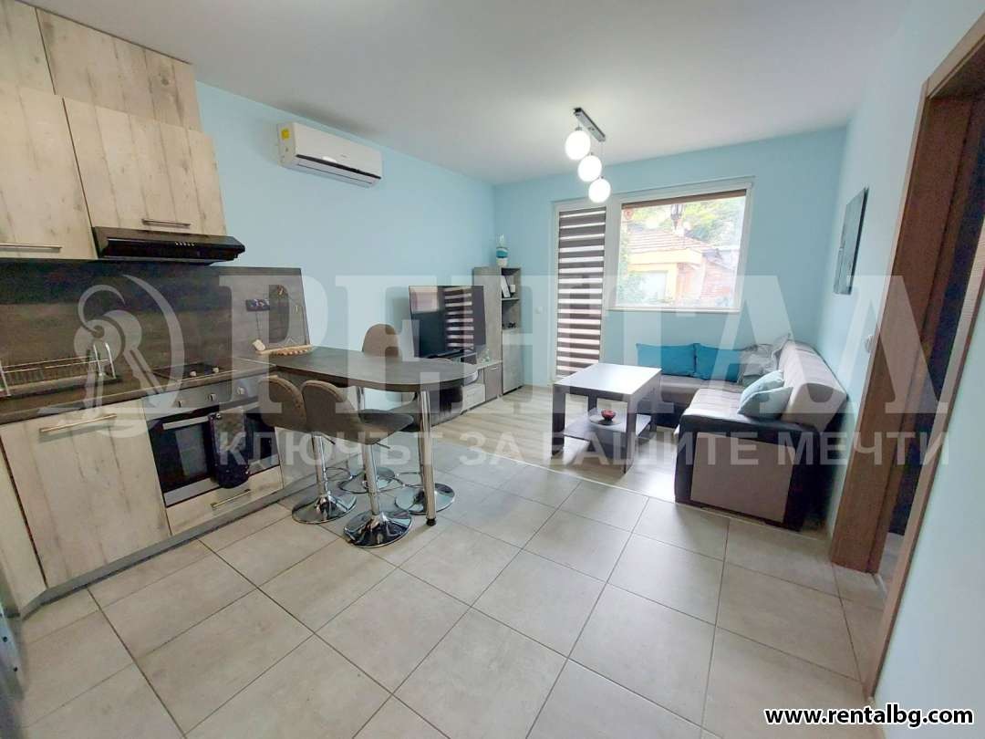 ОФЕРТА 259259 В непосредствена близост до ВМИ! Предлагаме под наем тристаен апартамент в нова, луксозна кооперация на 5 минути пеша от ВМИ, в подножието на Младежки хълм. Жилището се състои от две спални, хол с бокс, тераса и баня с тоалетна.Обзаведено е с мебелите по поръчка. Има три климатика, печка, фурна, хладилник, миялна машина,кафе-машина и се дава под наем с пълно домакинско оборудване-чаши, чинии и т.н.