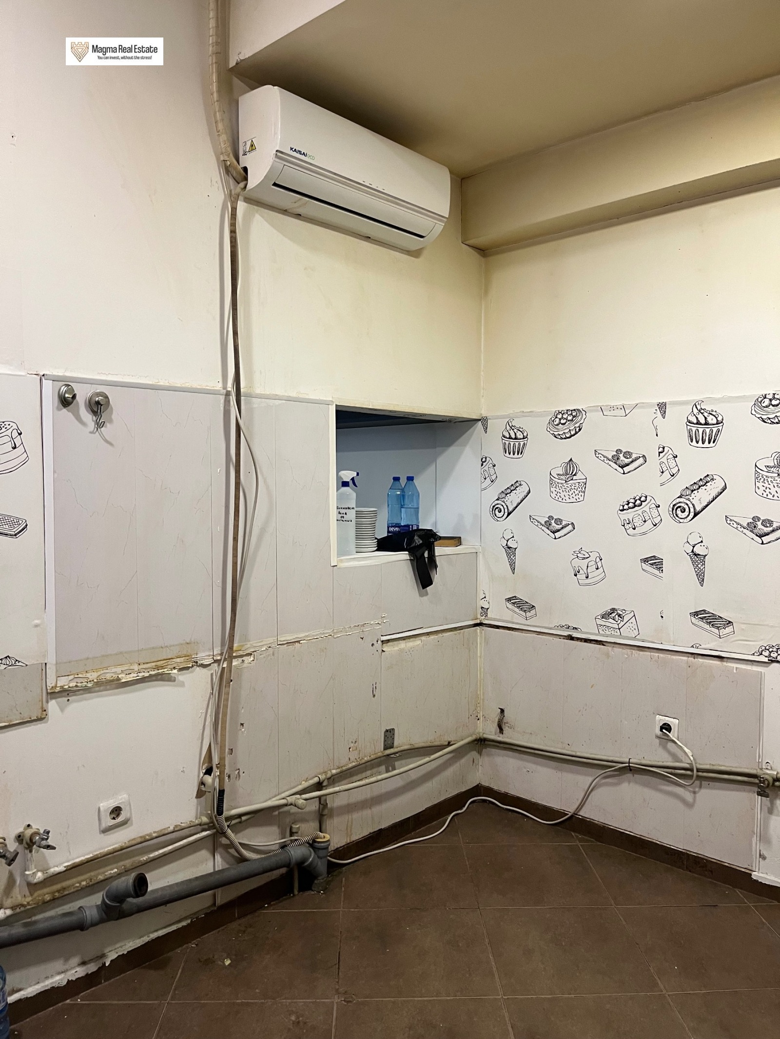 Отдава се под наем просторно търговско помещение кафе-сладкарница, с площ 130 кв.м, разположено на оживена улица в кв. Манастирски ливади запад, ул. Казбек.