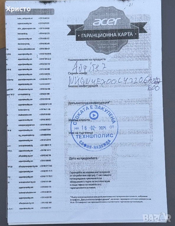 Лаптопът е в отлично състояние – много запазен, без забележки, без следи от сериозна употреба. Реално е ползван съвсем малко, повече е стоял, отколкото да се използва. Закупен е през Февруари 2025 година от Технополис и разполага с 24 месеца гаранция. Работи перфектно, без никакви проблеми – никога не е бил на ремонт и нищо не е правено по него. Използван е основно за офис работа, което означава, че не е натоварван с тежки игри или сериозни процеси. Въпреки това е напълно способен геймърски лаптоп и може спокойно да се използва както за игри, така и за работа, дизайн и мултитаскинг. Продава се в пълен комплект – оригинален кашон, зарядно и всички документи. Без бартери!!!