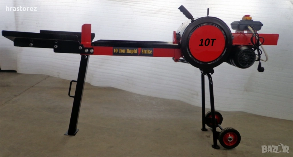 Бързоскоростни Професионални МОНОФАЗНИ Електрически цепачки за дърва German Maister -10T. Натиск 10 тона и време за цепене под 2 секунди. Цепачките са нова генерация, патентован продукт. Машината е без хидравличен цилиндър пълен с хидравлично масло и затова е толкова бърза. Използва се само голямата кинетична енергия, генерирана от монофазния електрически двигател с мощност 1,5KW.