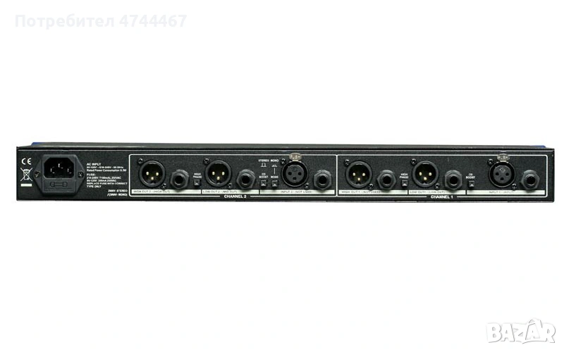 Двулентов стерео кросоувър с изход за субуфер, балансирани XLR изходи и небалансиран 1/4" TS жак.