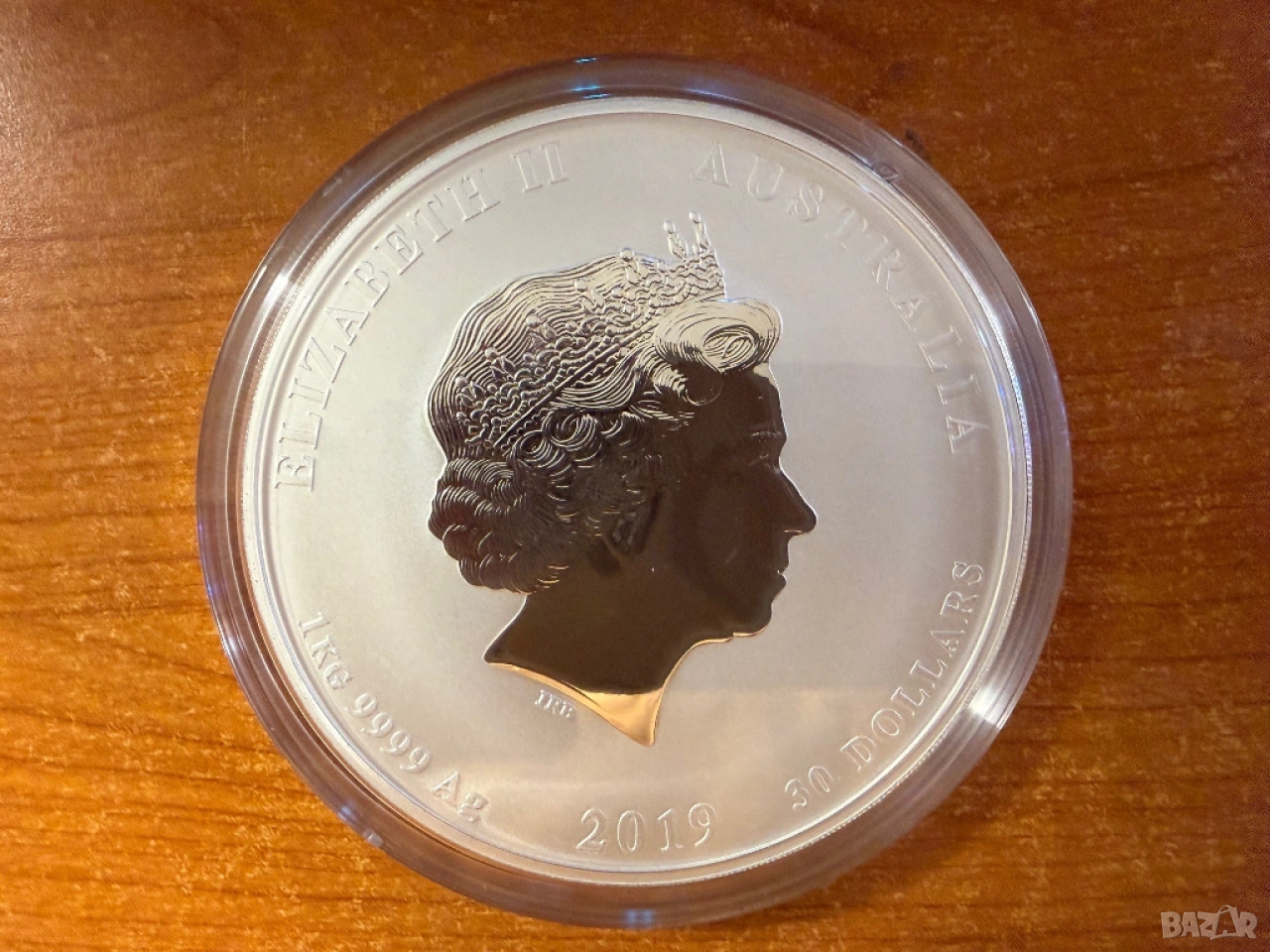 На реверса е изобразена кралица Елизабет II, която е и монарх на Австралия. В долната част на монетата са изписани думите "ELIZABETH II AUSTRALIA", а в горната част на монетата - "1 KG 9999 Ag 2018 30 DOLLARS".
