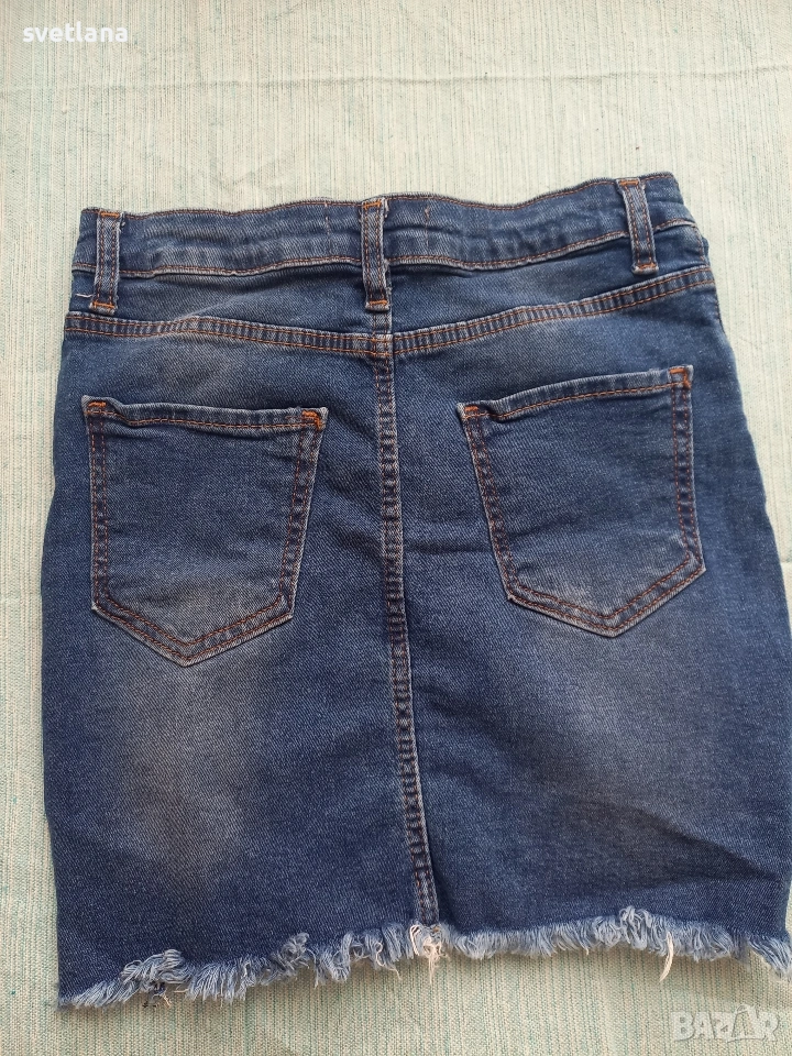 Полата става за дете 152см може и малко по - високо или малко по- ниско. Както и за слаба жена. Талията е висока. Горе полата е сравнително широка надолу е тясна по тялото
