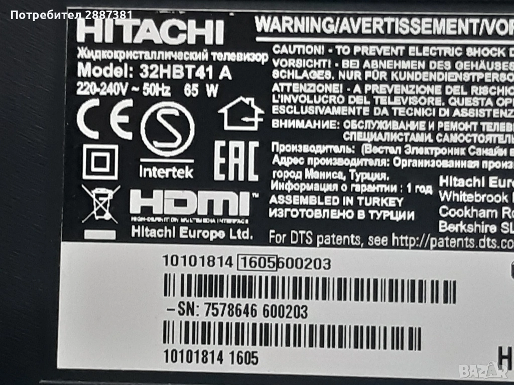 Hitachi 32HBT41A на части 17MB97 17MB62 → Обява 54069833