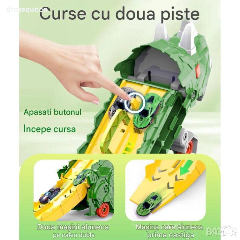 Този комплект предлага цялостно игрово изживяване – от вълнуващи състезания по разгъващата се писта/рампа до организирано съхранение на любимите колички. Наситеният зелен цвят и детайлният дизайн на T-Rex правят играчката забележителен акцент във всяка стая. Тя стимулира въображението, координацията и учи децата на организираност по забавен начин.