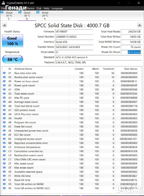 Silicon Power A55 4TB SSD 2.5 на 150 дни работа 100% HEALTH