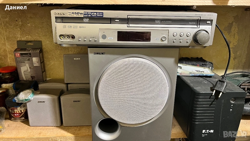 Продавам висок клас система за домашно кино Sony DAV-D150E. Моделът е уникален с това, че комбинира в едно устройство качествен DVD плейър и 6-глав VHS видеорекордер. Идеално решение за хора, които искат да се наслаждават на модерно цифрово качество и едновременно с това да прегледат старите си семейни видеокасети.
