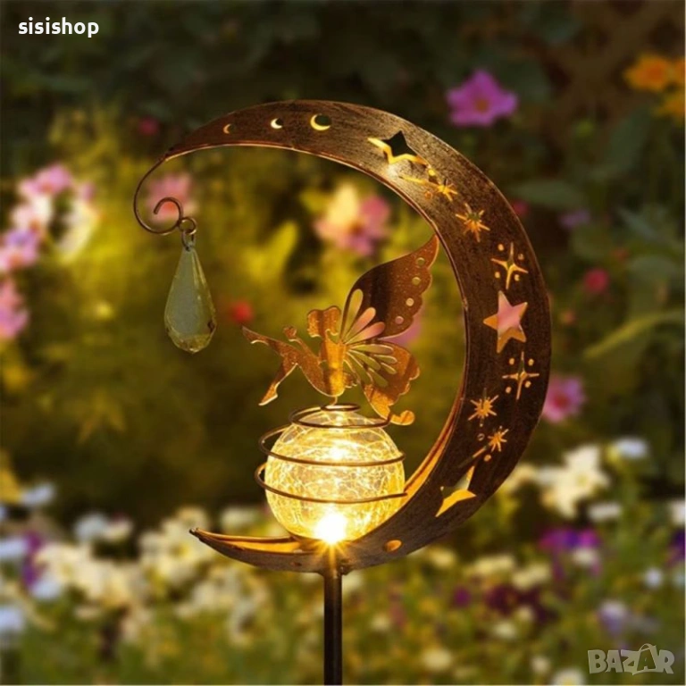 1 брой Декоративна соларна лампа „Фея върху полумесец“.
