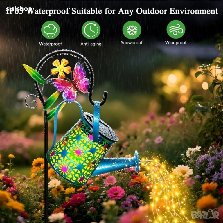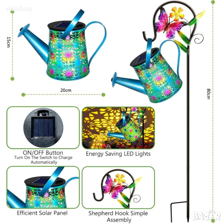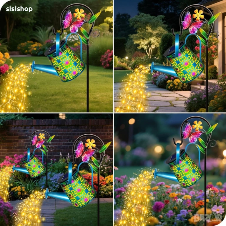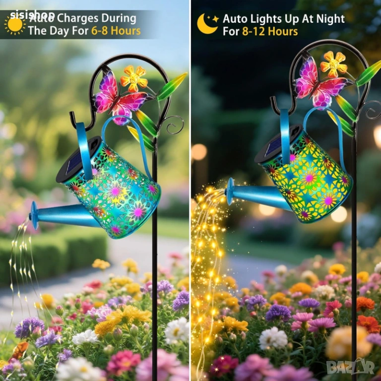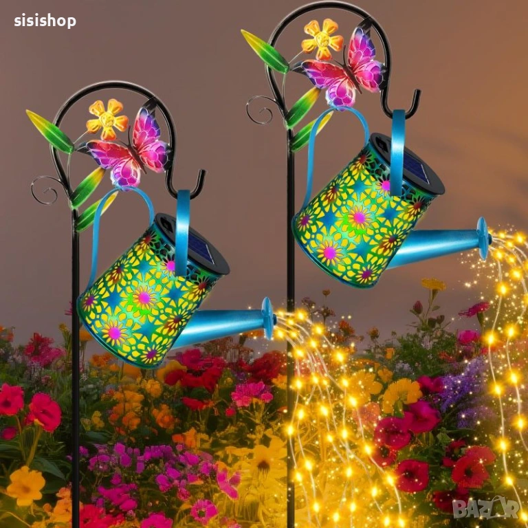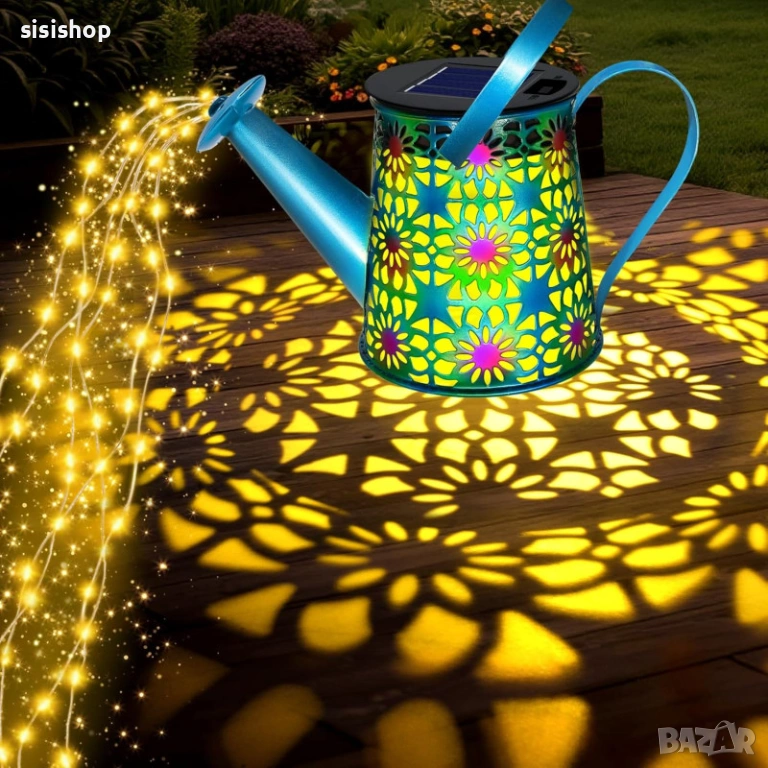 Превърнете двора си в омагьосано пространство с тази уникална цветна лампа лейка. Тя е идеалният подарък за любителите на градинарството, като съчетава красив цветен дизайн с вълшебен LED ефект на „изливаща се светлина“. Лампата е напълно автоматизирана – зарежда се от слънцето през деня и озарява цветните лехи или пътеките вечер, без да са необходими досадни кабели. Със своята височина от 80 см и здрава конструкция, тя се превръща в централен елемент на всеки външен декор.