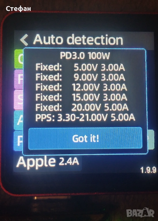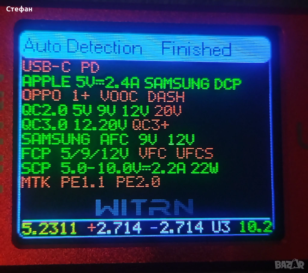 Зарядното и калъфът са чисто нови, запечатани. Батерията е ползвана броени пъти за електроинженерен тест, показа около 86% ефективност. Вижте експертното ревю от най-високо ниво за този модел, както и снимки на поддържаните протоколи. Зарядното и батерията имат по два USB-C изхода, като тя има и един USB-A. За Honor 200 Pro, Samsung и моделите на Motorola зарядното дава супер-бързо зареждане, и бързо за Huawei. ТРЯБВА МУ КАЧЕСТВЕН КАБЕЛ.То е голямо и удобно, с форма, която да не пада от контакта, за разлика от някои модели на прехвалена марка Anker. Батерията дава супер-зареждане за Huawei. Радвам се, че успях да намеря едно такова. Моделът вече го няма. В YouTube-канала на този експерт има най-различни тестове на новите модели, и до един са разочароващи (пуснете си автоматично субтитри). И не загрява много, за разлика от Baseus (имам десетки зарядни и батерии от всякакви марки).