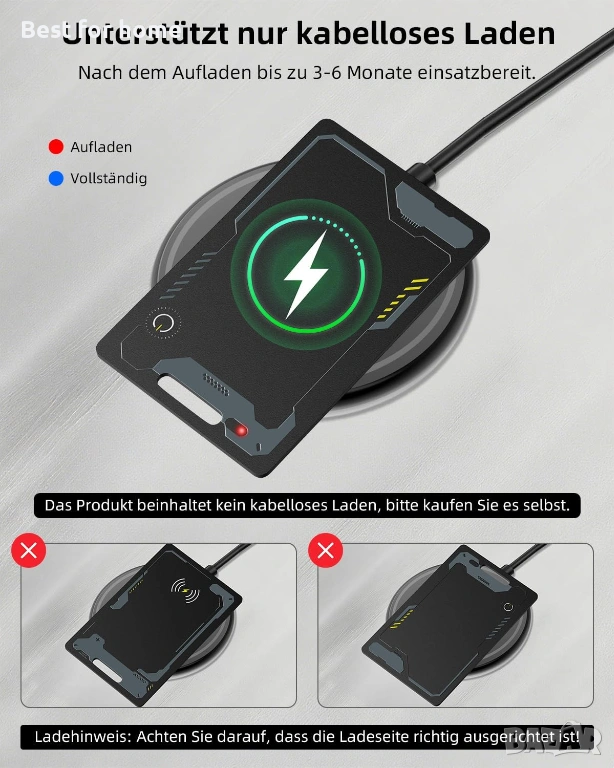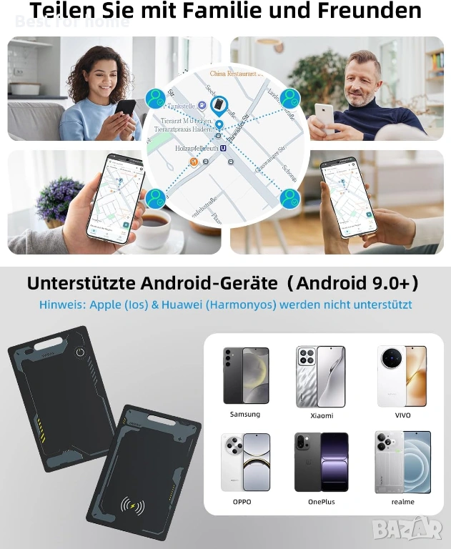 ЗАБЕЛЕЖКА: Това устройство за търсене на багаж за Android е съвместимо само с устройства с Google Android, а не с устройства с Apple iOS или Huawei. Това устройство се използва за предотвратяване на загуба. То предава информация за местоположението на вашия телефон чрез Bluetooth и чрез мрежата Find Hub. Не предоставя позициониране в реално време. Ако възникне грешка в съобщението за местоположение, можете да актуализирате местоположението си в приложението Find Hub.