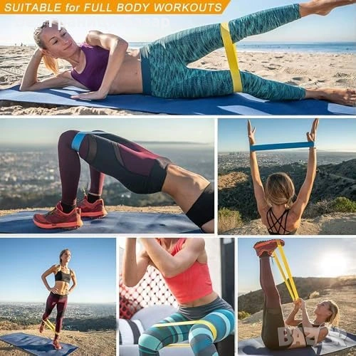 Нови Фитнес ленти 5 степени съпротивление за домашни тренировки йога пилатес с калъф